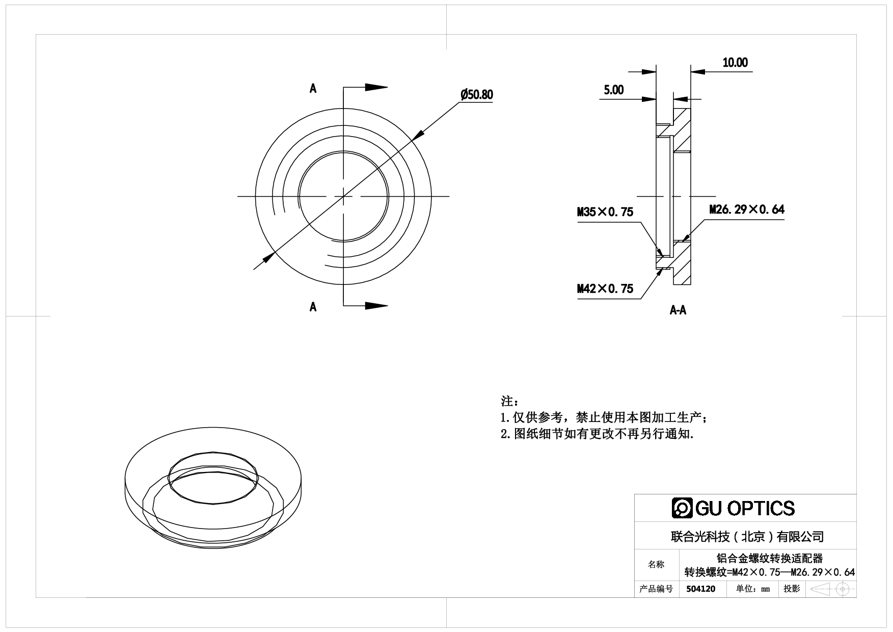 所有螺纹转换适配器都采用精密CNC数控加工,具有极高的尺寸精度以及良好的同心度和一致性,可使不同部件相互连接后的整体光路同轴。螺纹转换器还提供了和其他通用品牌的实验室光机部件之间的螺纹转换适配器(光桥系统和SM1、SM2、SM05匹配连接的螺纹转换接口等)。用户可以方便的将光桥系列产品应用到已经使用的光学架构系统中,从而节省从国内外采购同类产品的昂贵成本。