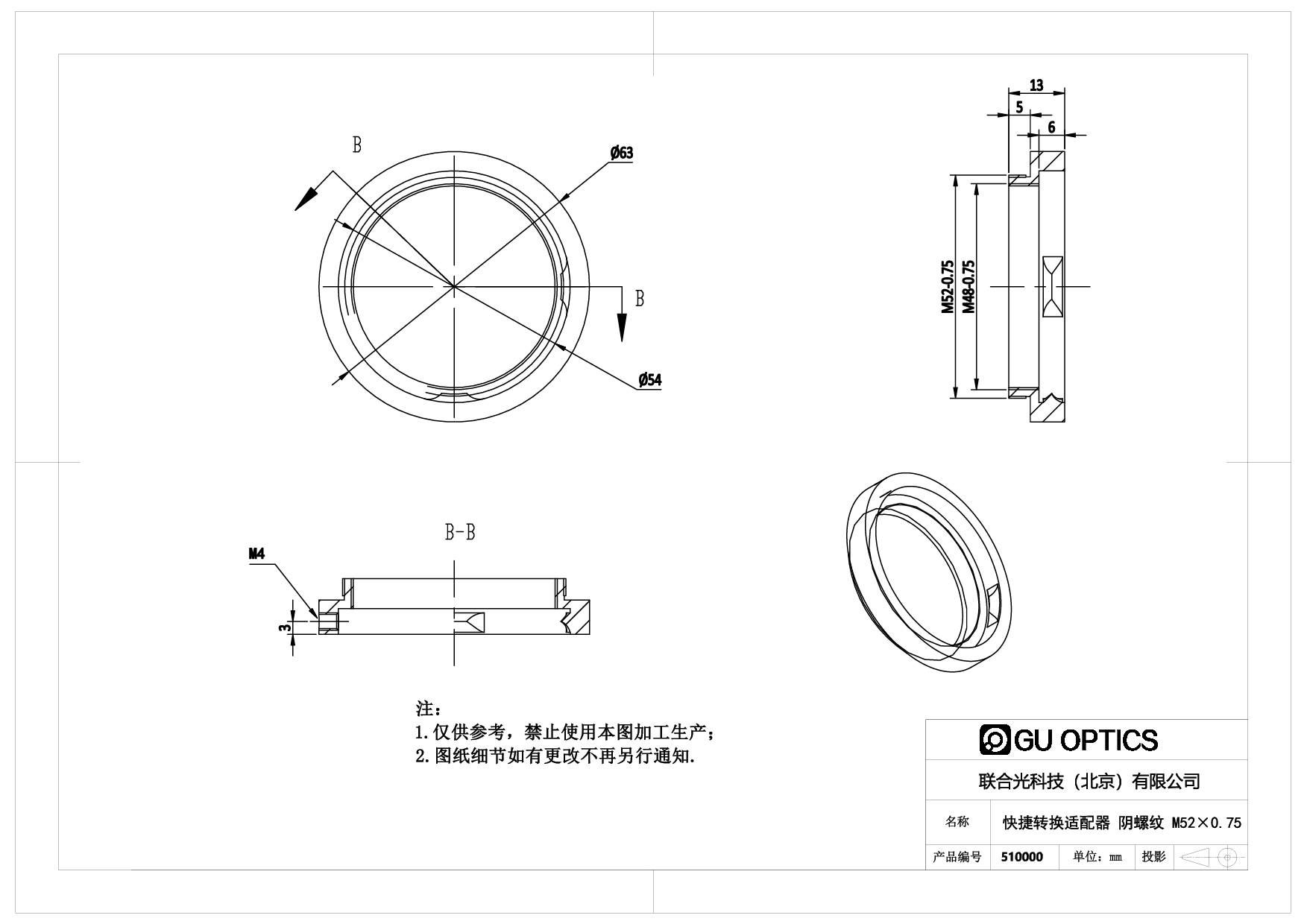 - 端口1螺纹规格 M52x0.75-阳