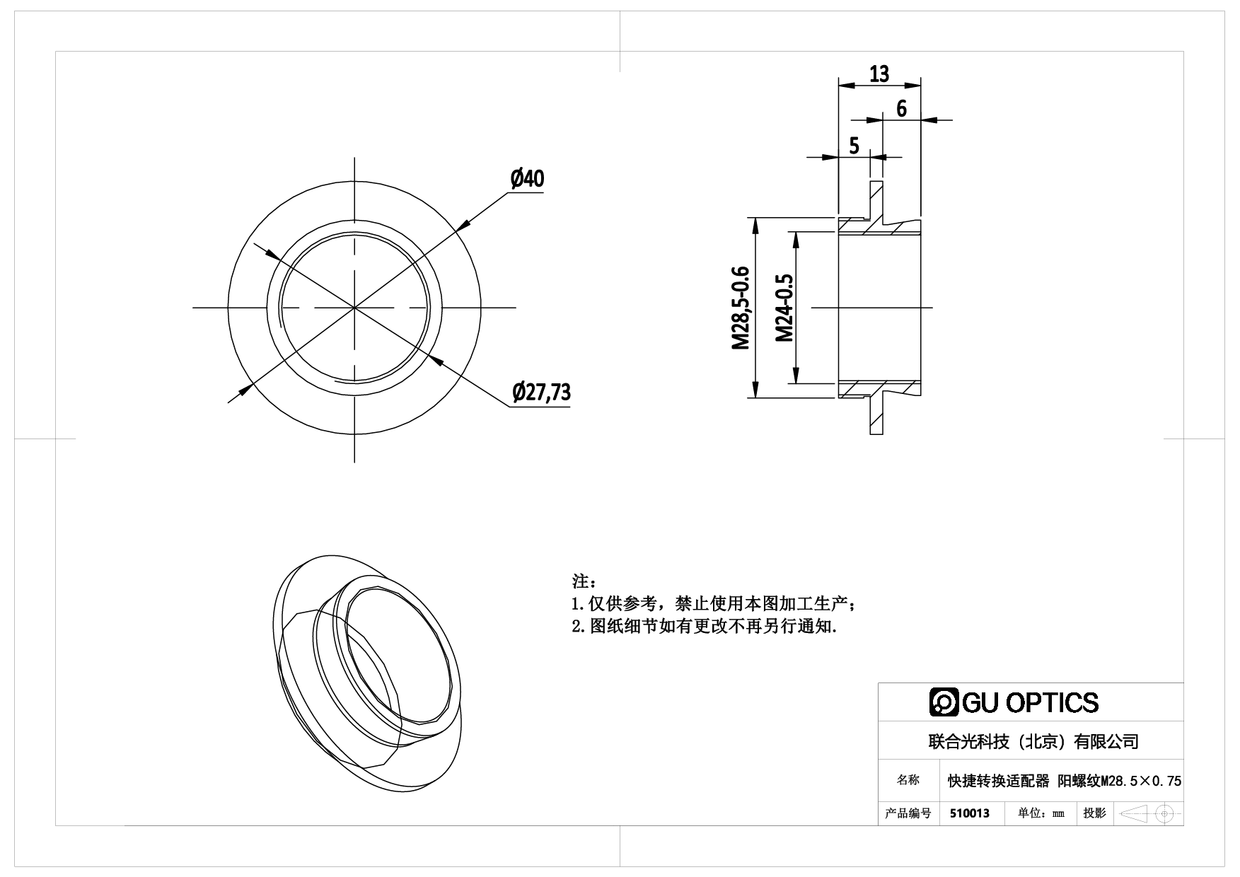 - 端口1螺纹规格 M28.5x0.6-阳