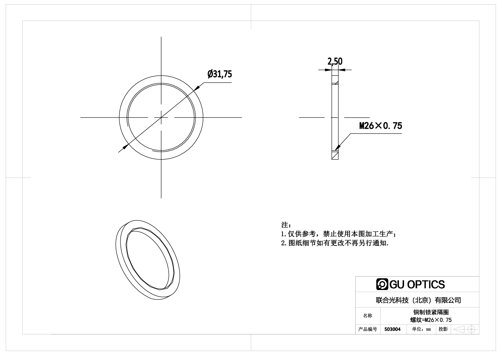 铜制锁紧隔圈 Ø31.75mm T=2.5mm
