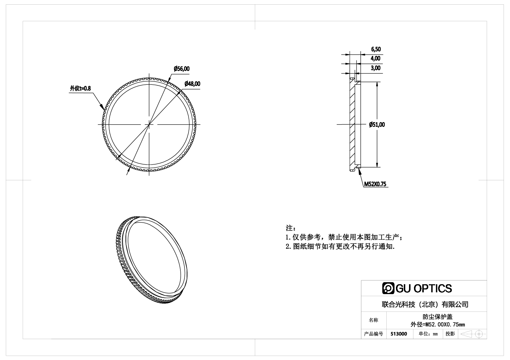 防尘保护盖 Ø56mm 螺纹接口M52x0.75-阳