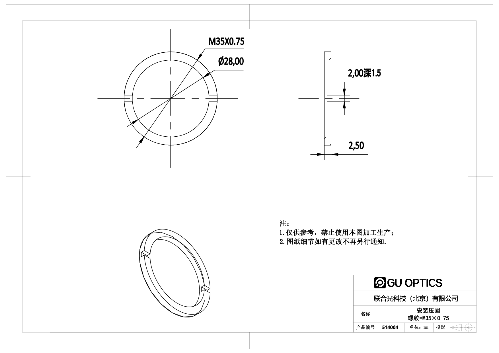 安装压圈 螺纹规格-M35x0.75 内径-Ø28mm