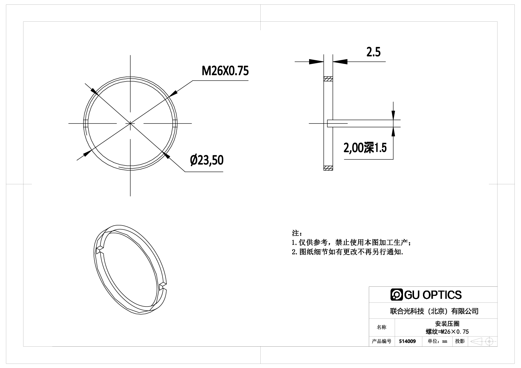 安装压圈 螺纹规格-M26x0.75 内径-Ø23.5mm