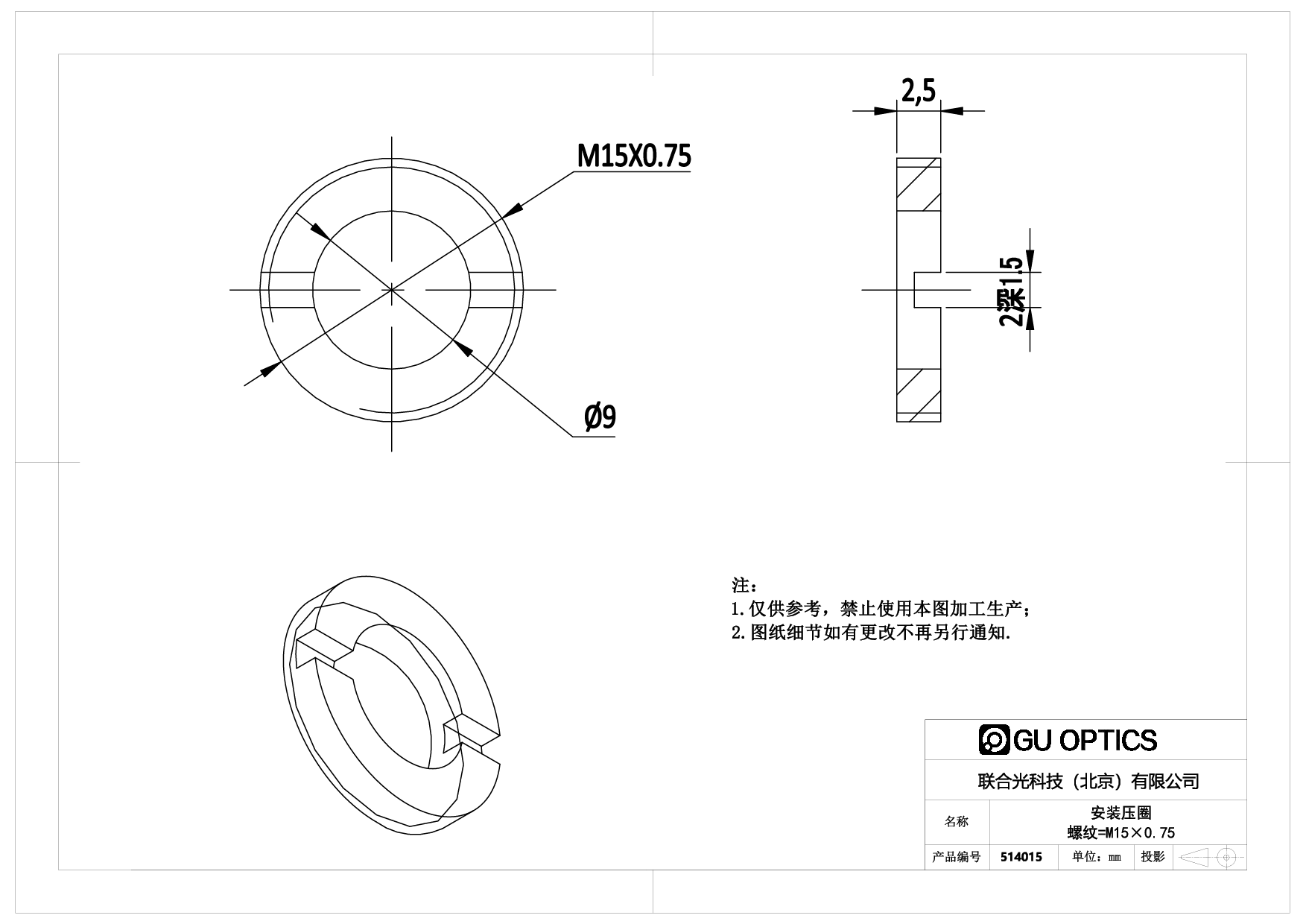 安装压圈 螺纹规格-M15x0.75 内径-Ø9mm