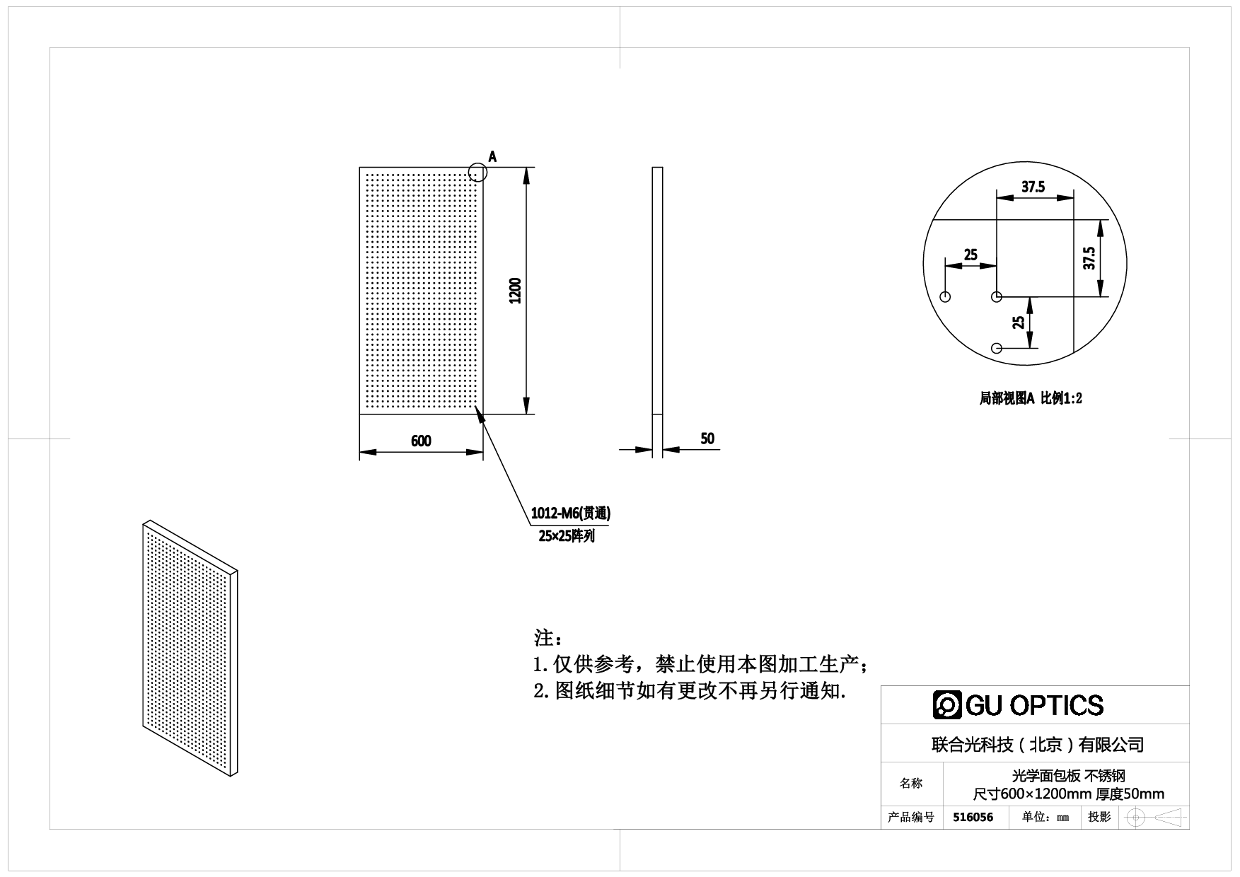 光学面包板 尺寸=600×1200mm 厚度=50mm
