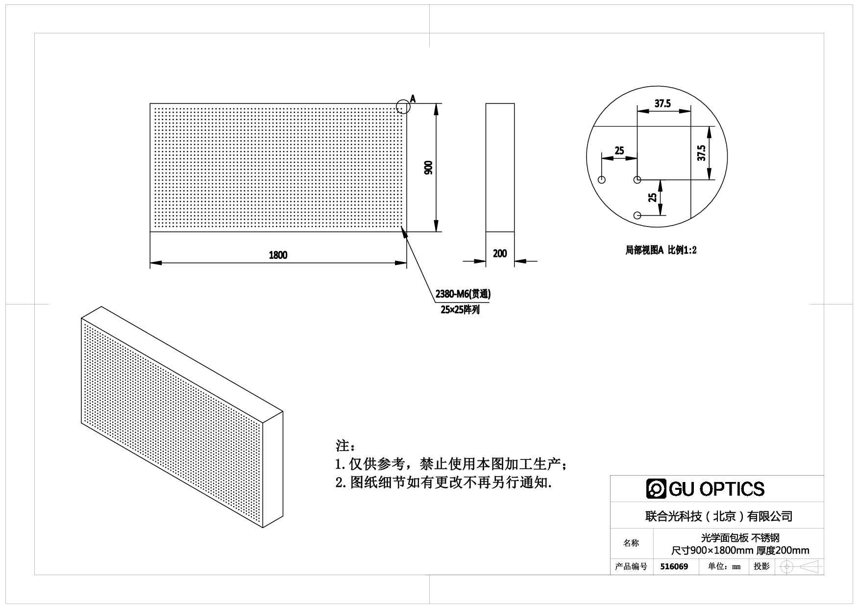 光学面包板 尺寸=900×1800mm 厚度=200mm