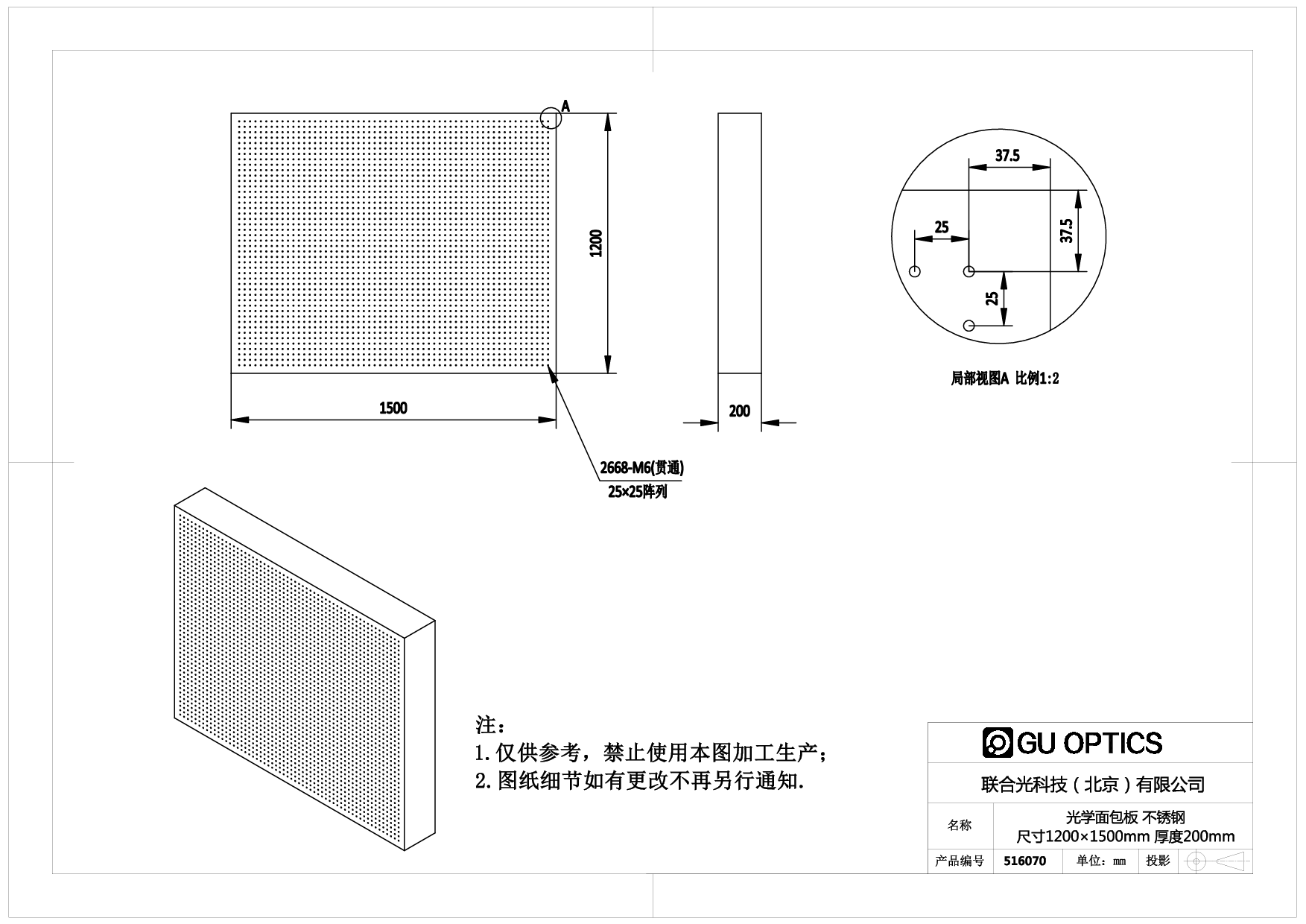 光学面包板 尺寸=1200×1500mm 厚度=200mm