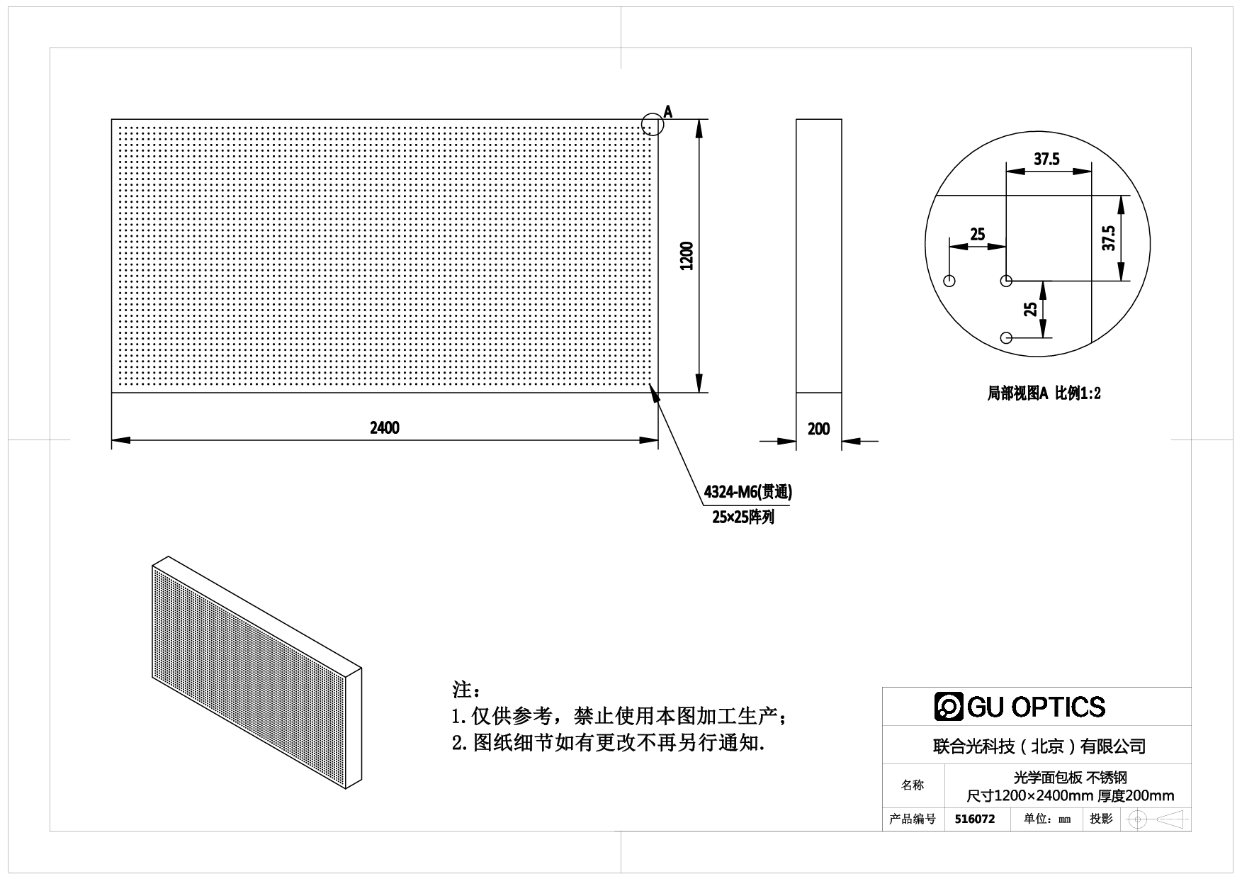 光学面包板 尺寸=1200×2400mm 厚度=200mm