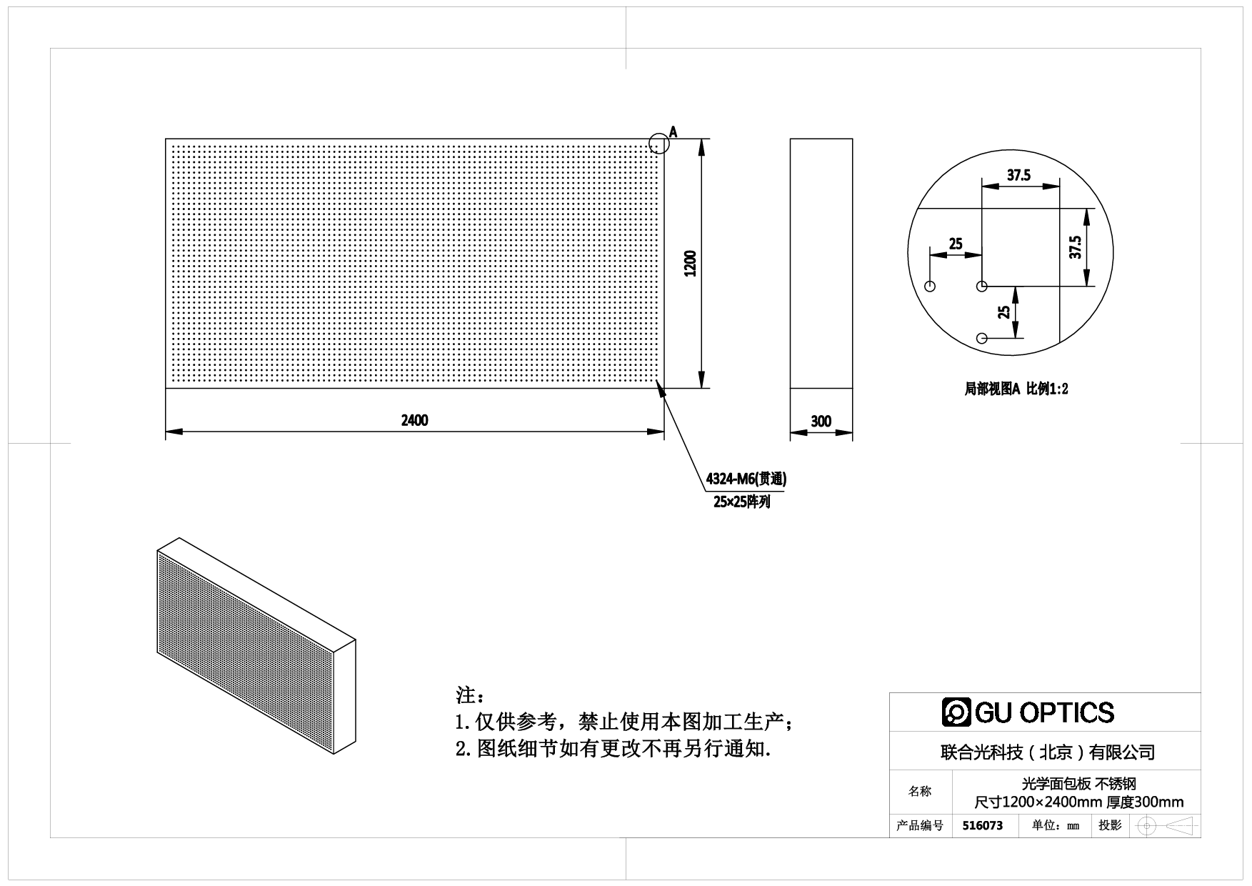 光学面包板 尺寸=1200×2400mm 厚度=300mm