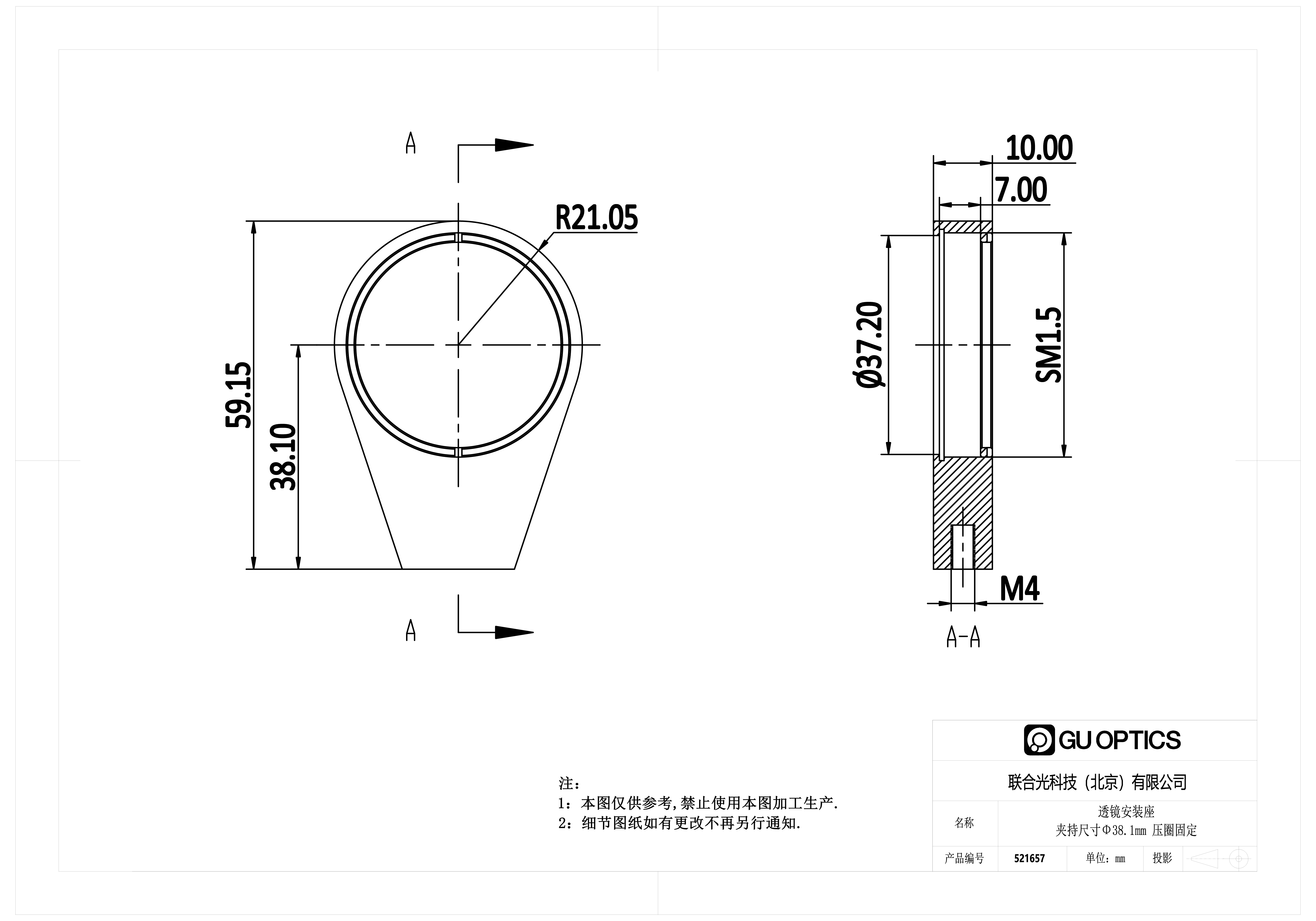 透镜安装座 夹持尺寸Φ38.1mm 压圈固定