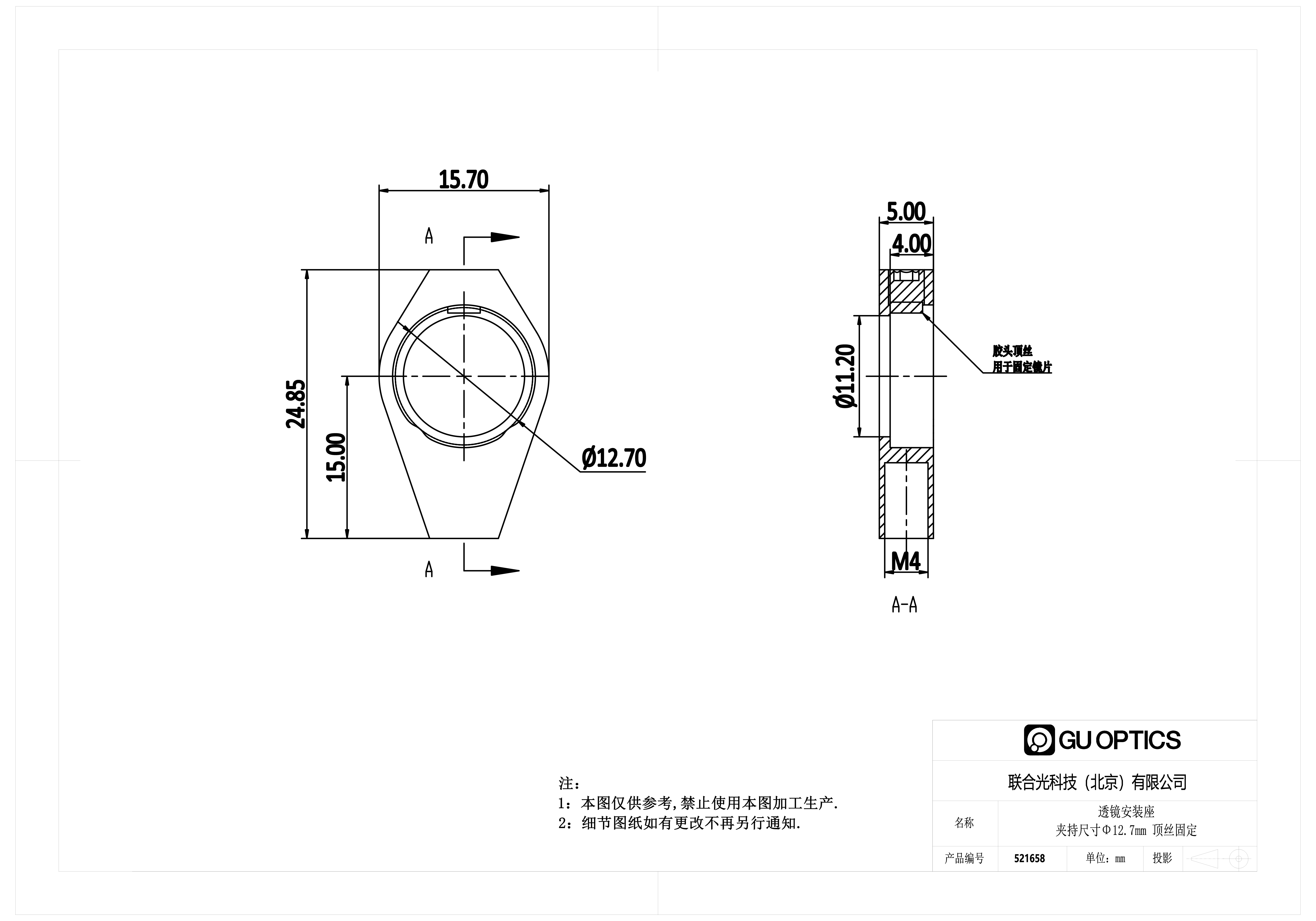 透镜安装座 夹持尺寸Φ12.7mm 顶丝固定