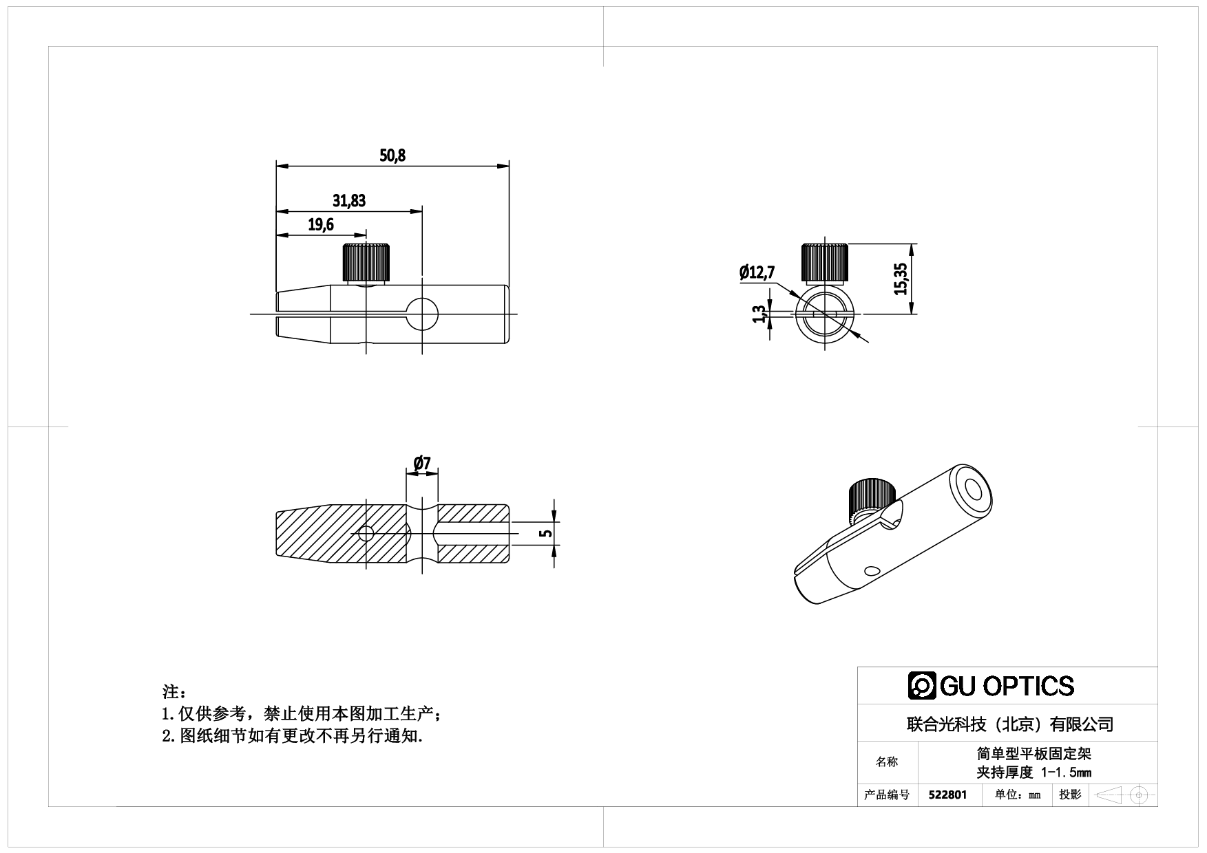 1. 522800是一简单固定夹具,可固定的平板厚度可达10mm。