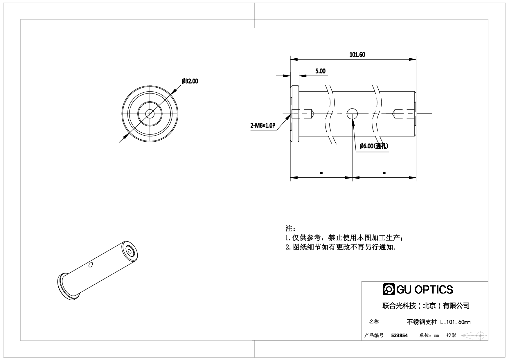 固定高度的基座(Fixed Height Pedestal)有较大的直径和较强钢性。比传统支撑棒/支撑座组合有更好的稳定性。高度基座的两端有不同的螺纹牙孔,使固定时能有更多的弹性上端和底端都有M6螺纹牙孔,侧边提供一穿孔,方便客户用六角板手穿过此孔锁紧光学组件。有六种不同的高度25.4mm~127mm可供选择,其它高度可依顾客要求订做。