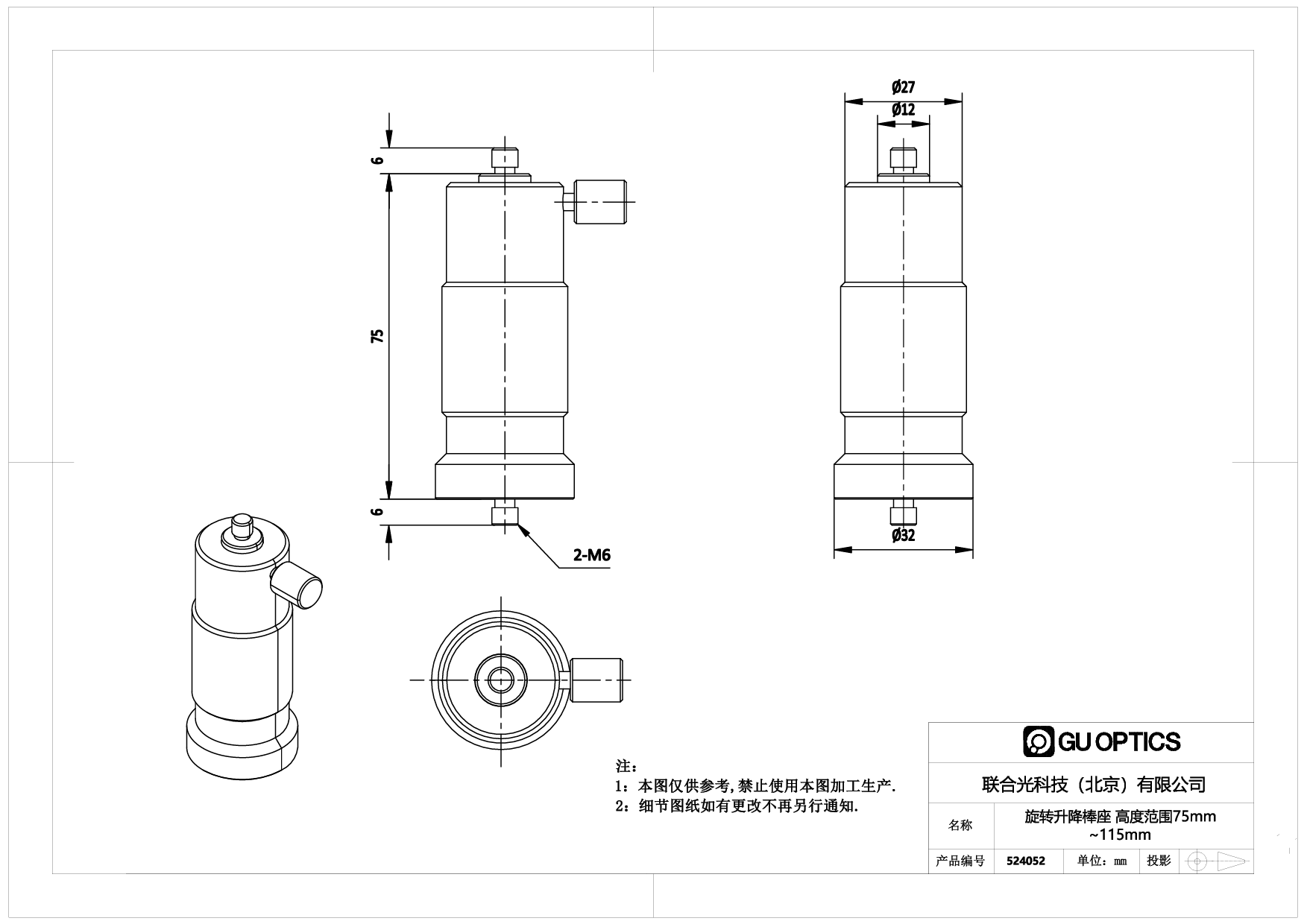 联合光科的旋转声响棒座自带支撑棒,简单便捷,用于垂直微调,多种高度调节范围可选:50mm-65mm、60mm-85mm、75mm-115mm、110mm-180mm。带有缩紧手轮用来锁定调节好的高度,也可以支撑棒系列配合使用,增加整体高度。