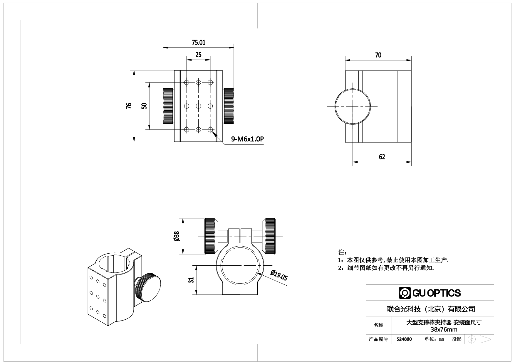 联合光科的大型支撑棒夹持器与大型支撑棒配合使用,为光学器件提供安装平面。大型支撑棒夹持器提供三种规格的安装面尺寸:38x76mm、16x65mm、38x38mm。联合光科可为您提供配套的光机元件,同时我们有大量的标准库现货供应。联合光科衷心期望在您构建光学实验系统的过程中,能为您提供简洁、经济、快捷的手段,并方便您使用过程中快捷的进行元件替换和调整。