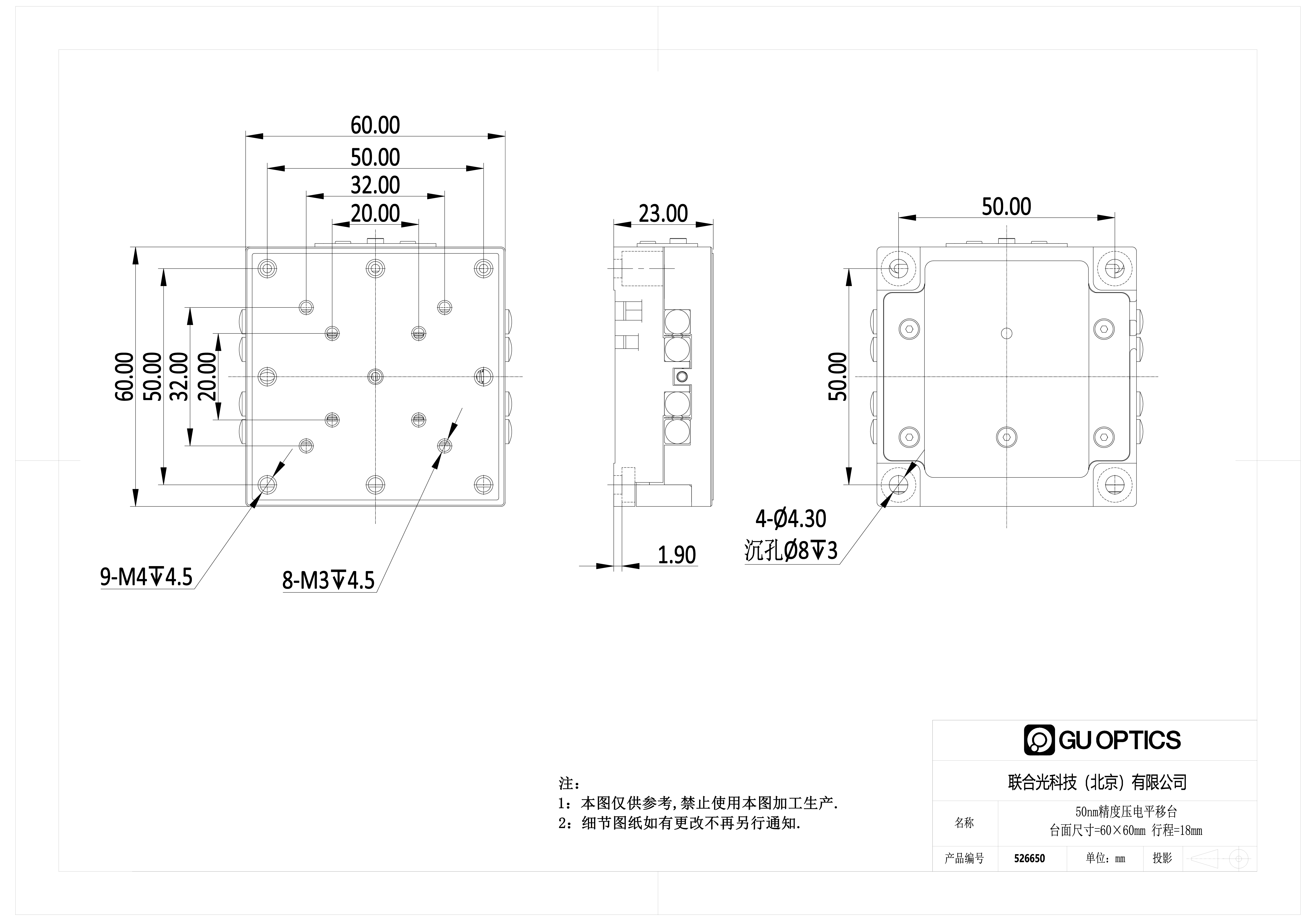50nm精度压电平移台 台面尺寸=60×60mm 行程=18mm 包含控制器
