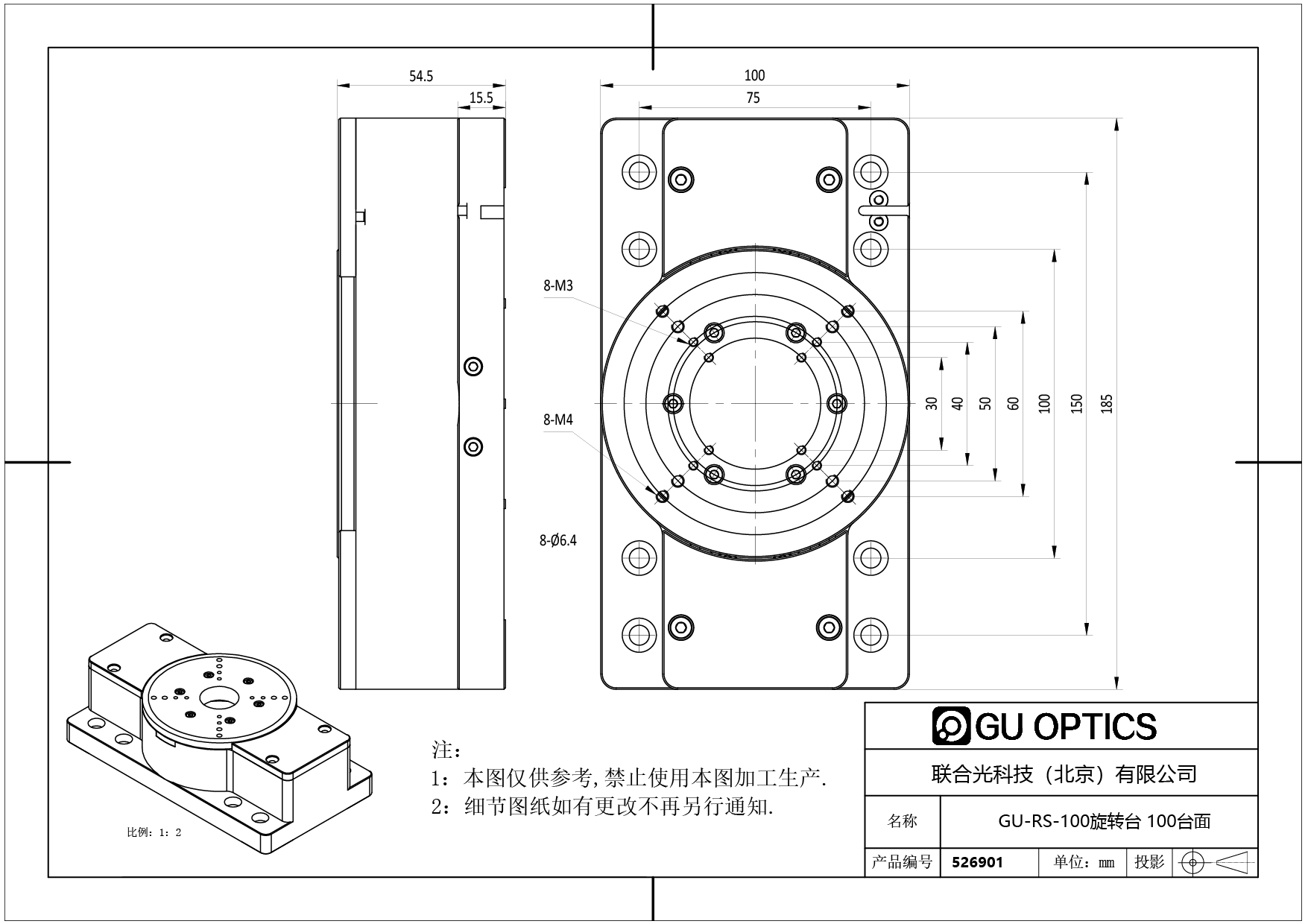 压电纳米旋转台 台面尺寸=100mm 行程=350Deg