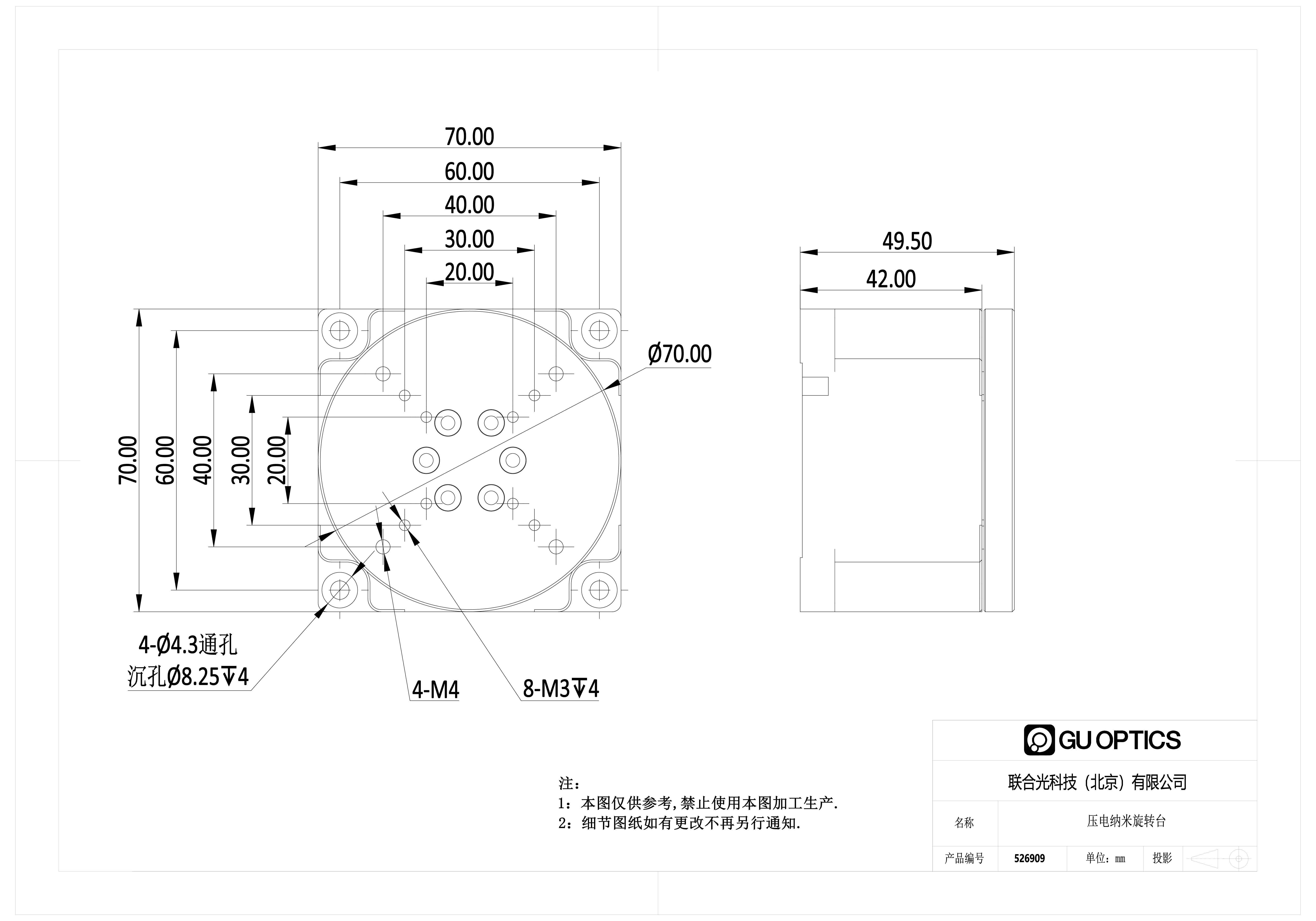 *单/双压电马达驱动 *交叉滚柱轴承 *断电自锁,内具刹车功能,无回程间隙 *最小步进旋转角度0.001° *紧凑设计,其他尺寸可定制