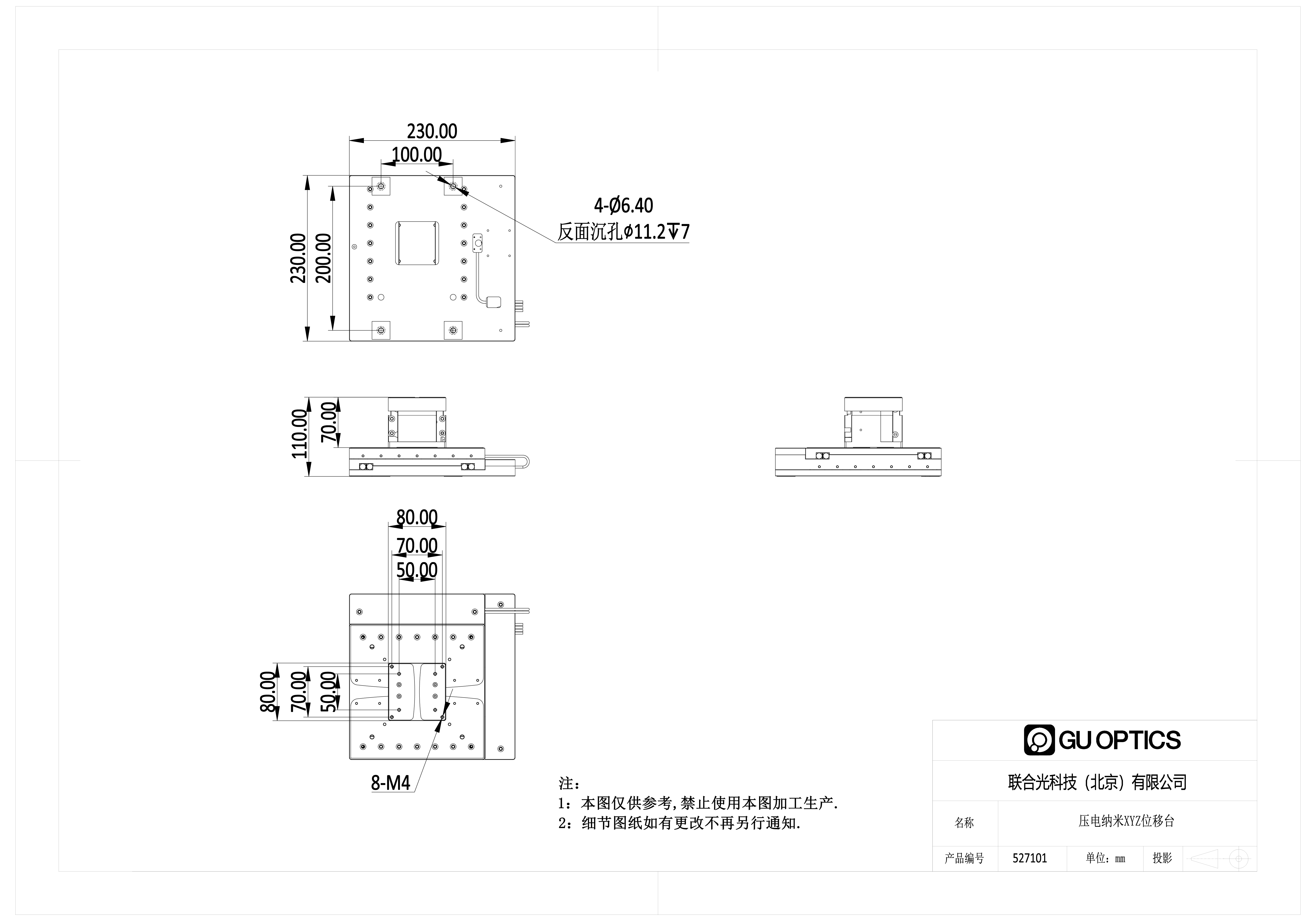 - 行程 X轴105mm,Y轴105mm,Z轴10mm
