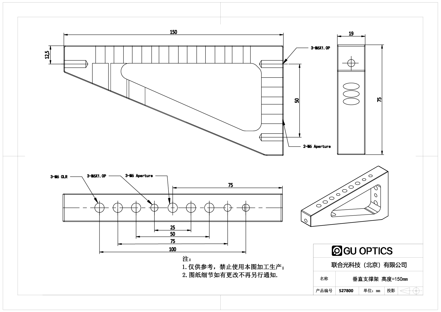 垂直支撑架 高度=150mm