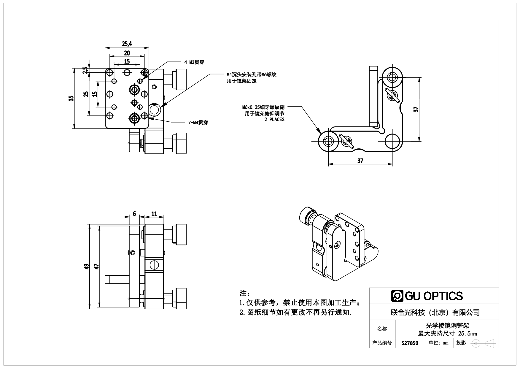 光学棱镜调整架 最大夹持尺寸 25.5mm
