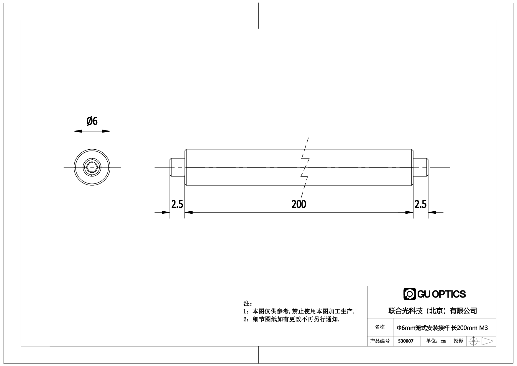 联合光科系统安装接杆材质为不锈钢,直径为Φ6mm,兼容30mm和60mm的笼式系统,12.5mm-300mm多种长度规格可选。顶端带M3凹端紧定螺钉,可拆卸螺丝,多根接杆串接可拓展长度。