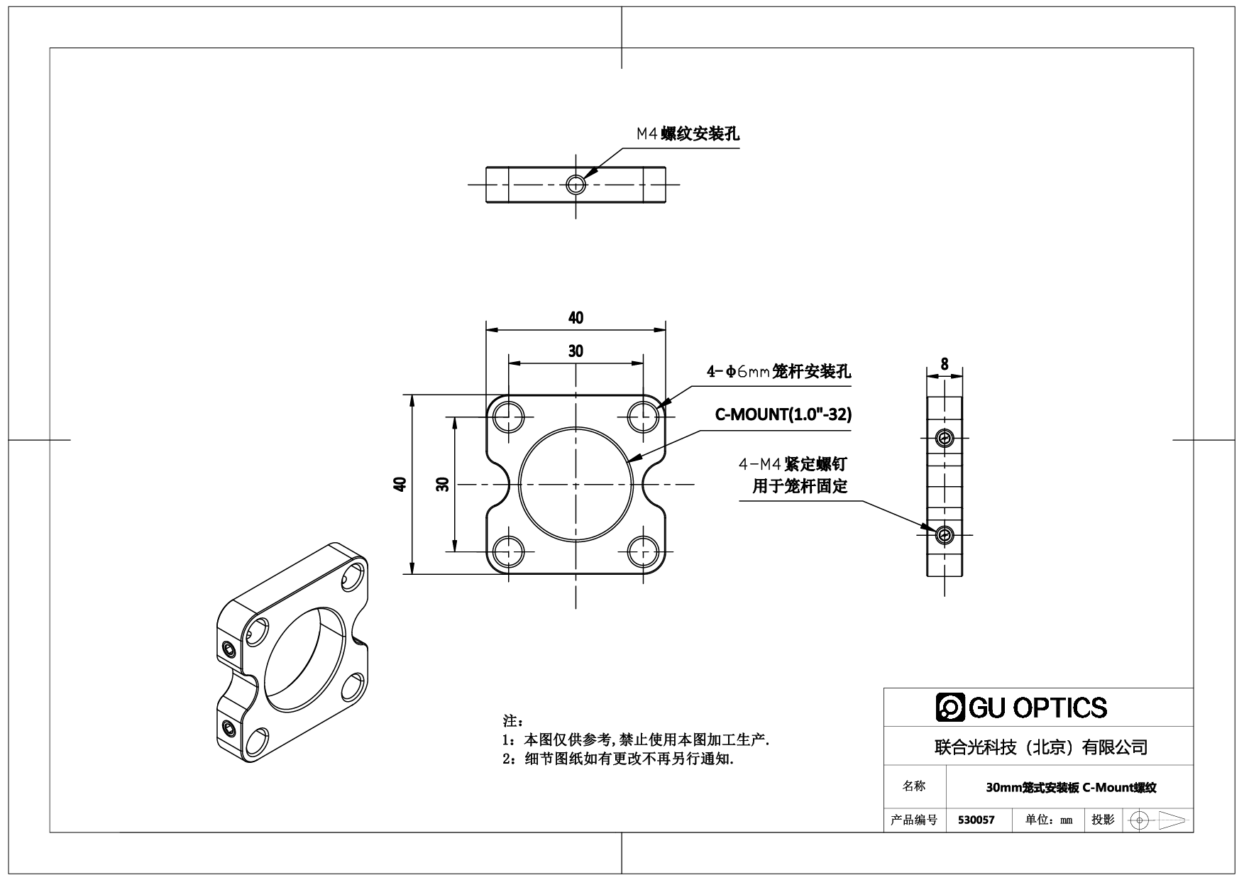 联合光科提供多种规格笼式系统安装板,适用安装12.7mm,Φ25.4mm的光学元件或者透镜套筒物镜等器件,兼容30mm笼式系统。