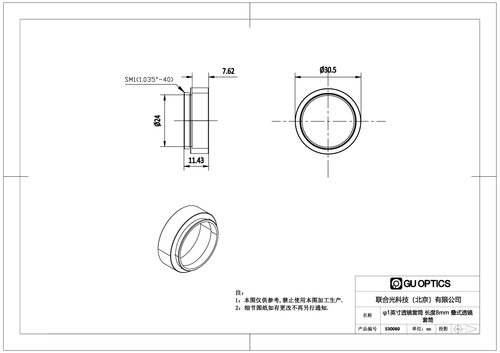 φ1英寸透镜套筒 长度8mm 叠式透镜套筒