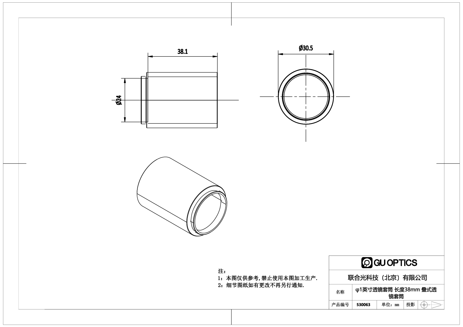 φ1英寸透镜套筒 长度38mm 叠式透镜套筒