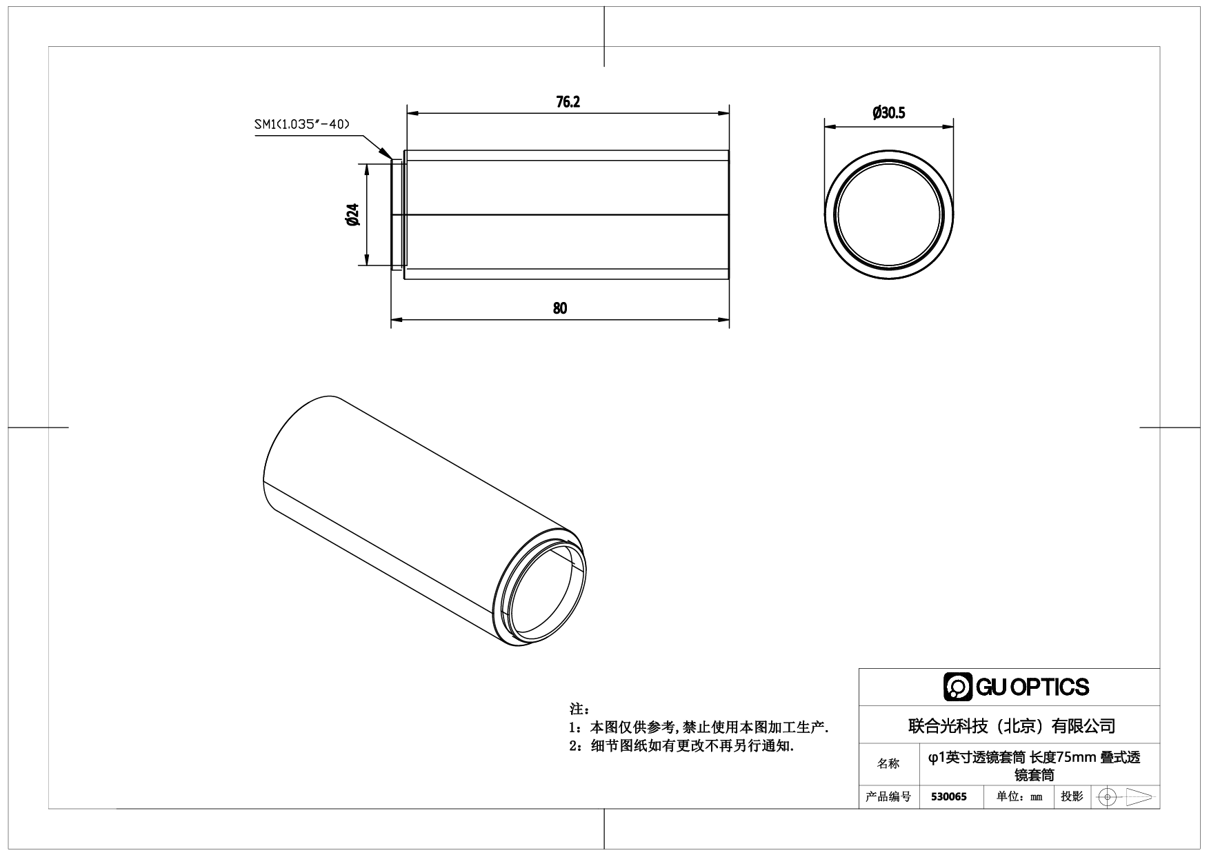 φ1英寸透镜套筒 长度75mm 叠式透镜套筒