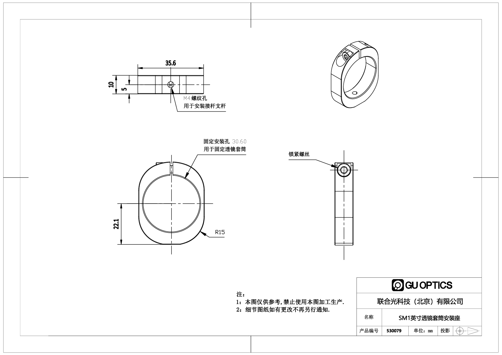 2. 可安装SM05、SM1、SM23透镜套筒;